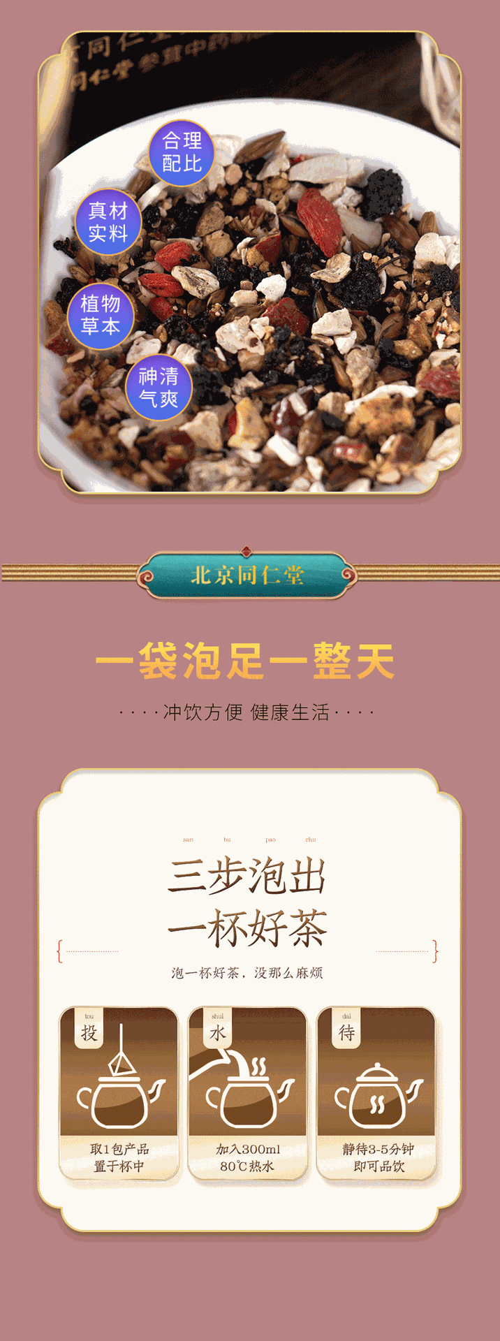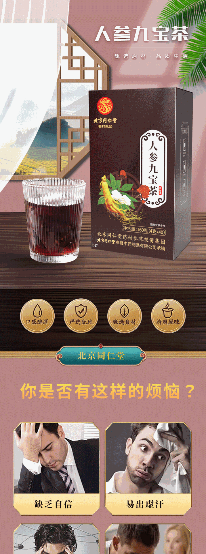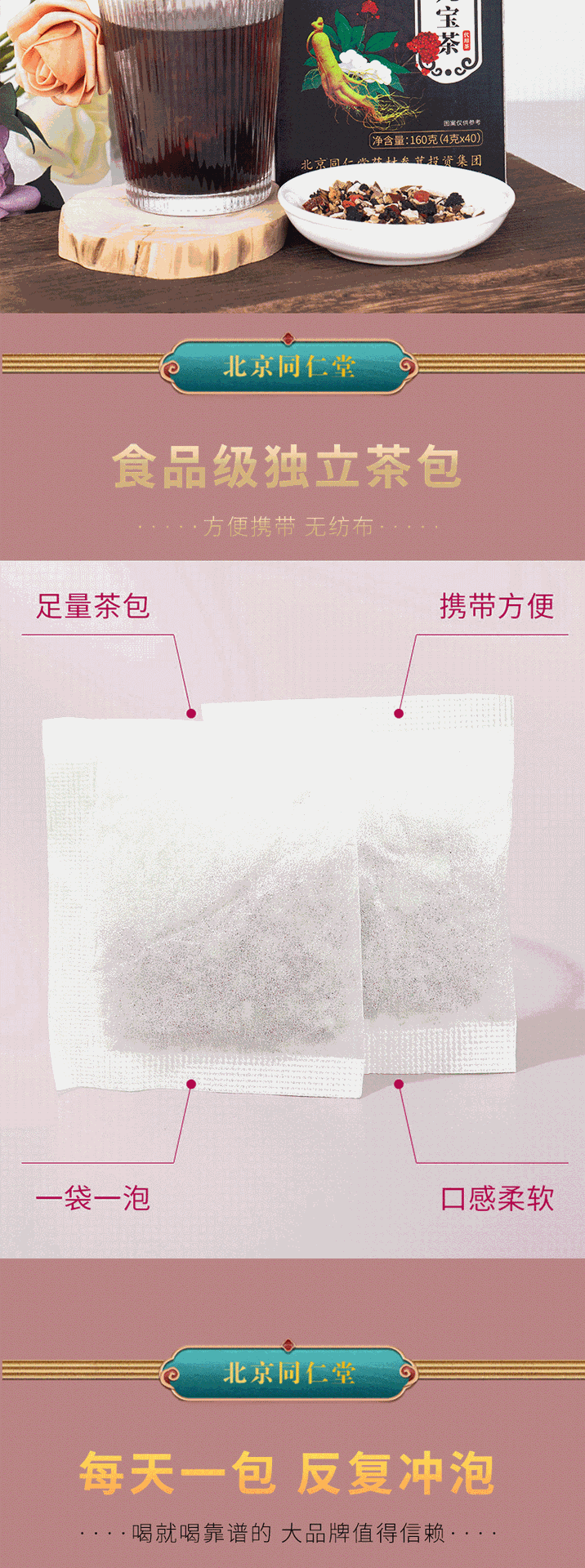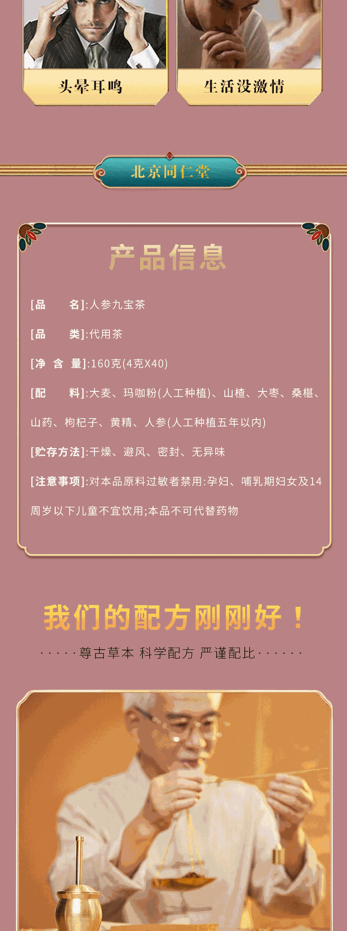 同仁堂人参九宝茶男性熬夜养生茶160g(4g*40包)TongRenTang Ginseng Nine Treasure Tea