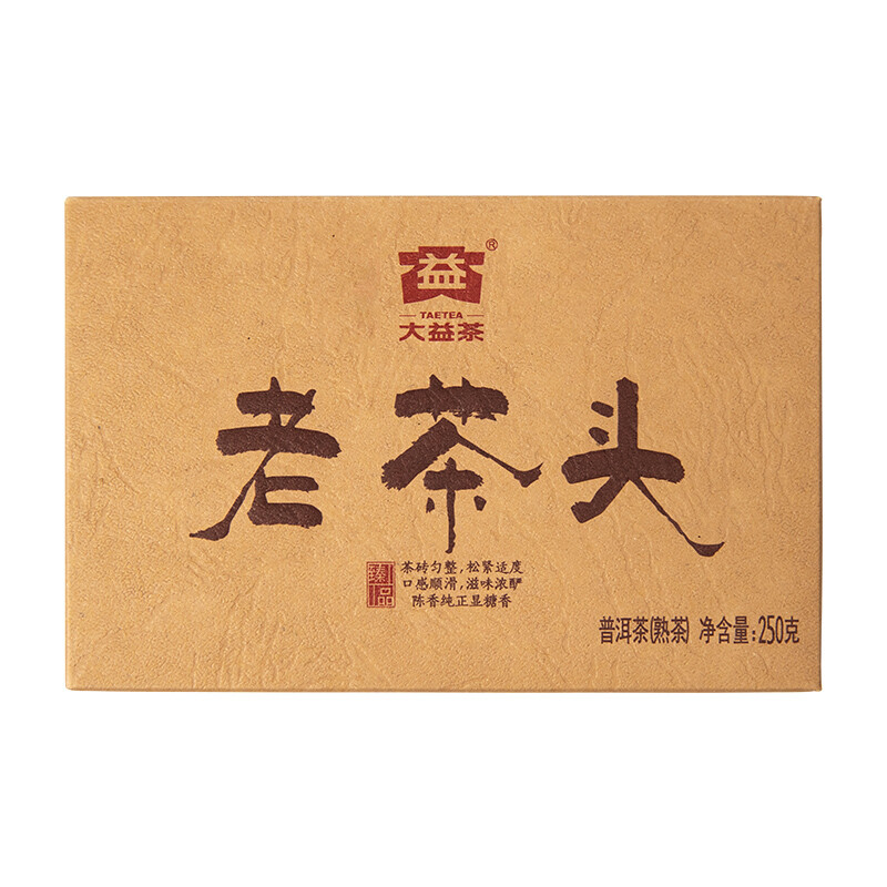 Pu Erh LaoChaTou Menghai Dayi Puer Tea Brick 250g Ripe/Cooked Tea Type: Puer Ripe tea Net weight: 250g/pc, Price for one pc ONLY. Production Date: 2021 (2101 batch) Origin: Menghai,Yunnan,China Manufacturer: Menghai Tea factory,TAETEA Group.