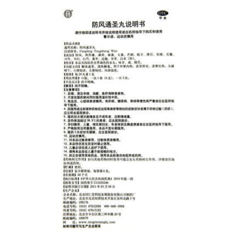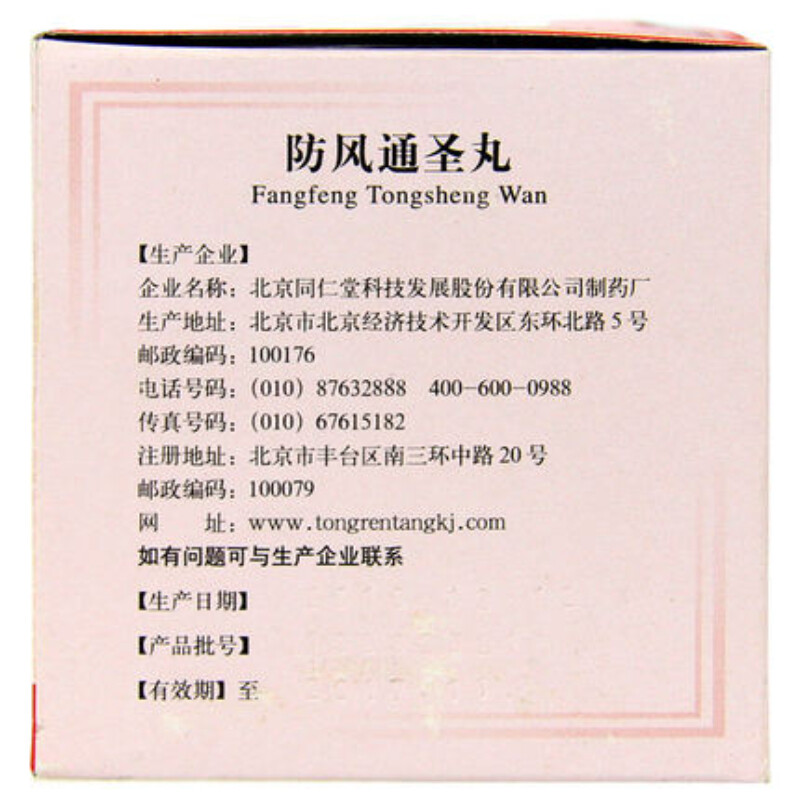 同仁堂防风通圣丸 每盒10袋 1盒装 保质期48个月 Item: Tongrentang Fangfeng Tongsheng Wan Quantity/Box: 10 Bags Shelf Life: 48 Months Package...