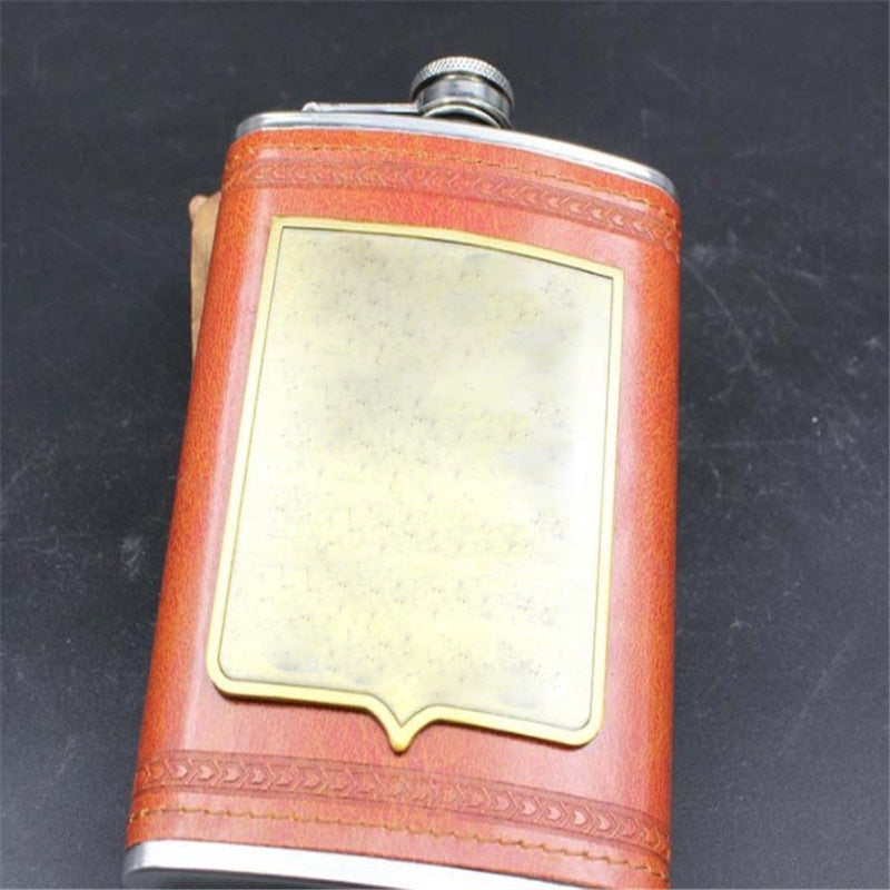 9oz Luxury Stainless Steel Hip Flask 3 Styles Faux Leather Whiskey Wine Bottle Retro Engraving Alcohol Pocket Flagon As Gift 1pc