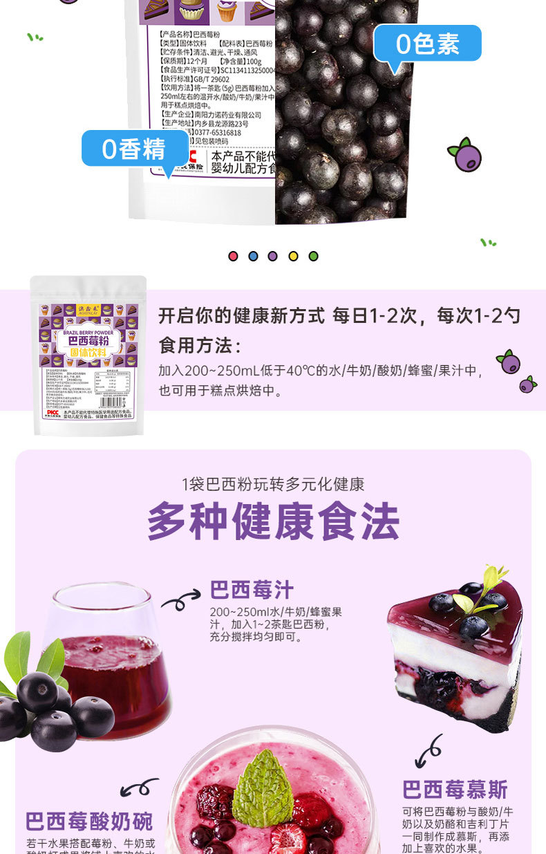 Raw materials and ingredients:Acai berry powder
