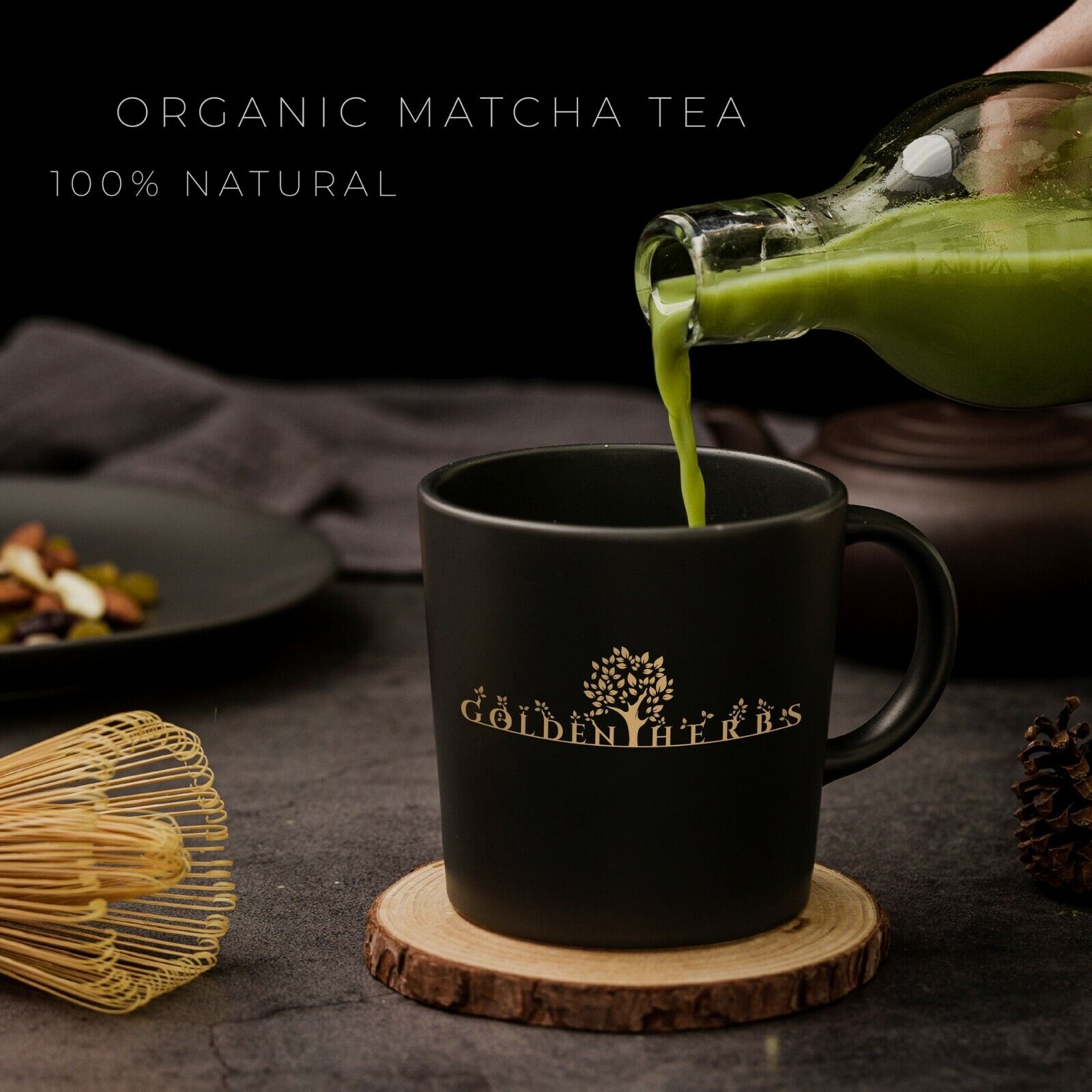 Golden Herbs Ceremonial Matcha is a shade grown green tea made of finely ground tea leaves.