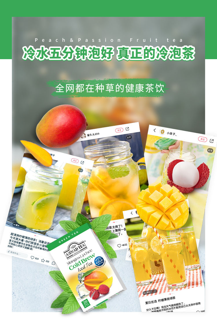 Man Mango Lychee Flavored Green Tea Cold Brew 20 Teabags Boxed Fruit Tea Bags