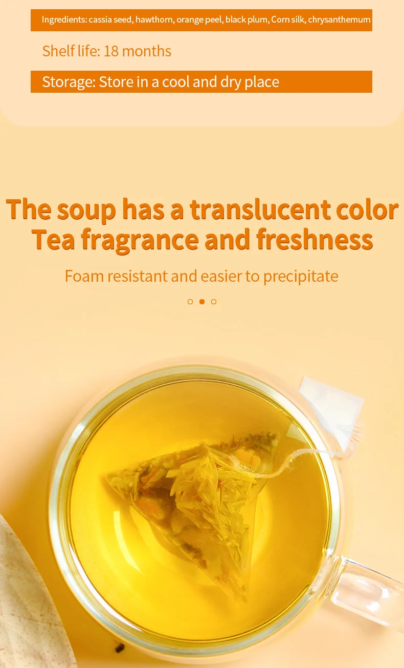 Ingredients: cassia seed, hawthorn, orange peel, black plum, Corn silk, chrysanthemum