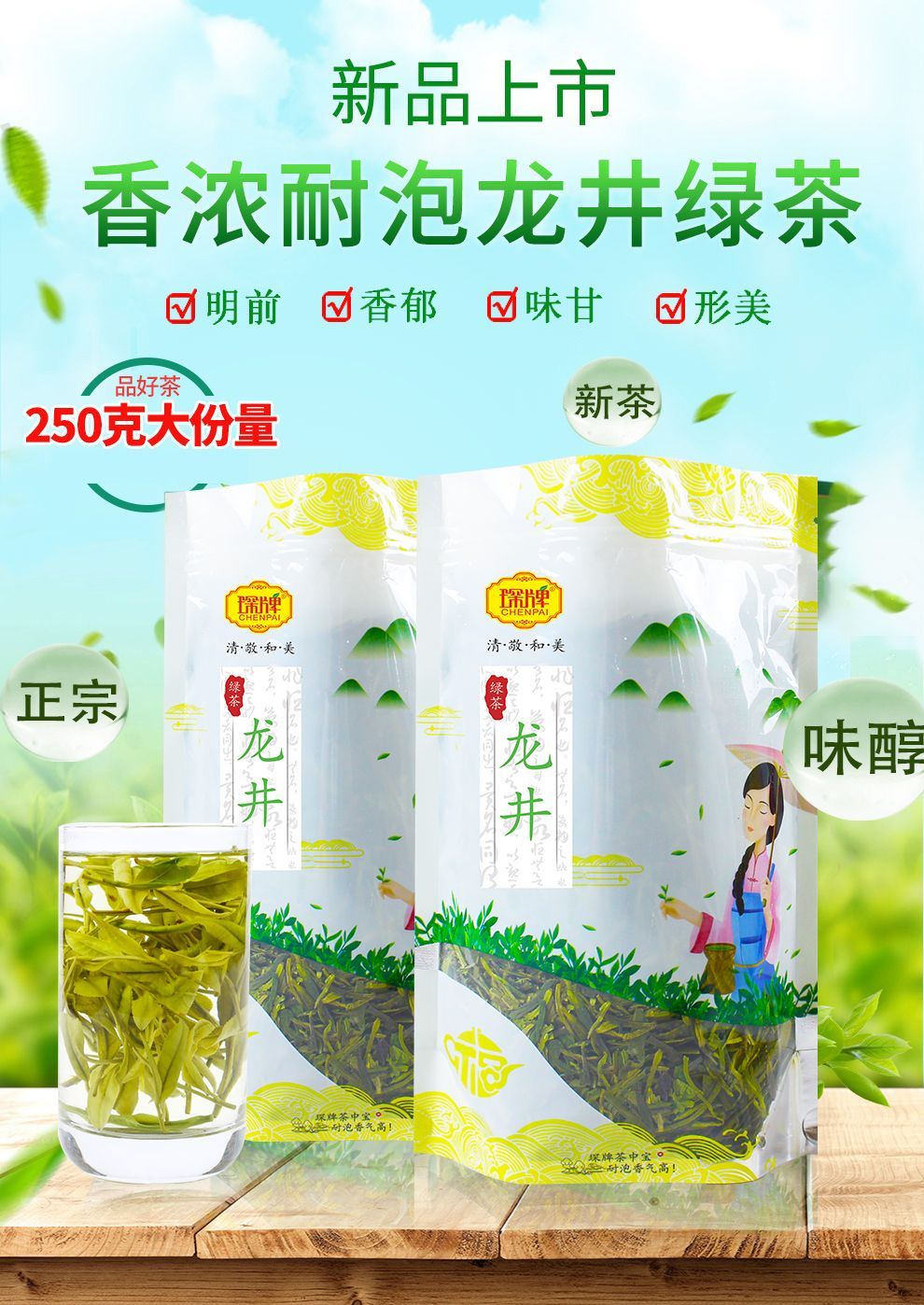 Premium Longjing Green Tea First Flush 250g Fresh & Full-Bodied Resealable Bag