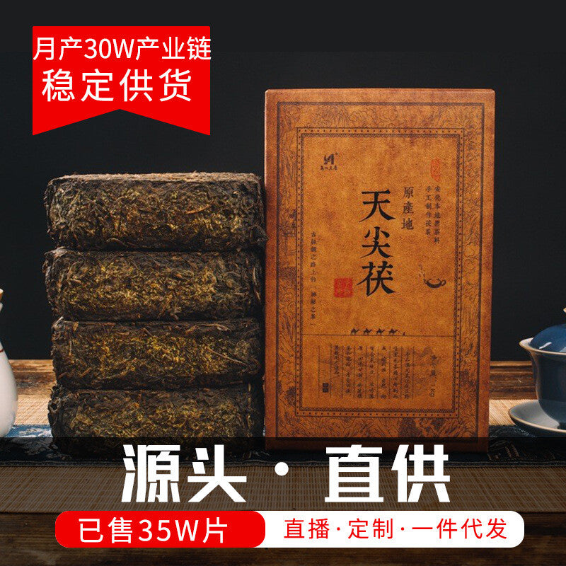 07年原料压制老茶砖 湖南安化黑茶1000克天尖茯 金花茶 2015年10月生产