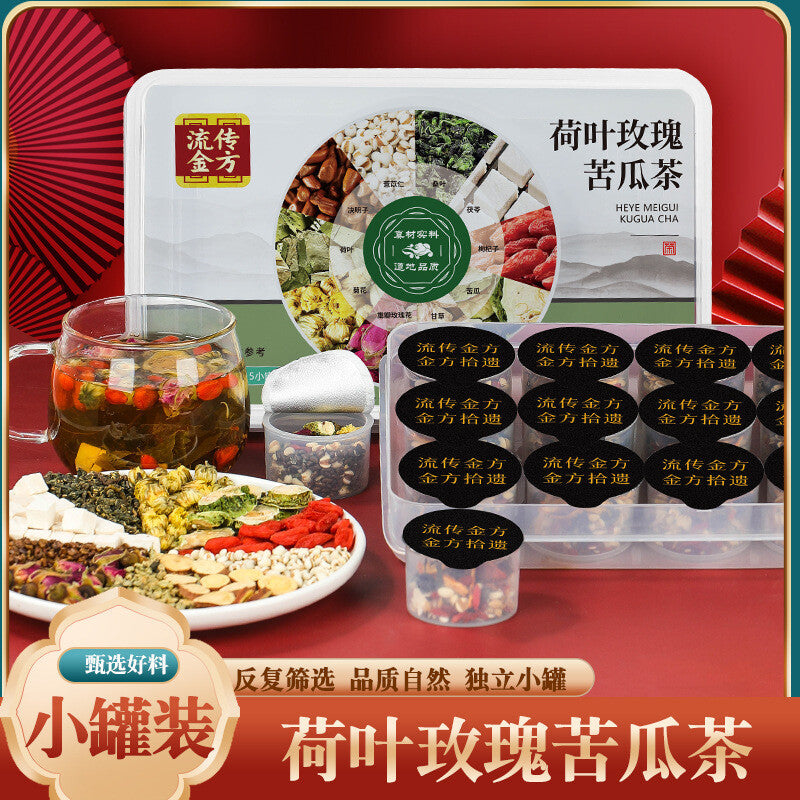 Rose Lotus Leaf Bitter Melon Tea 250g/box 15 small cans Coix Seed Poria Tea